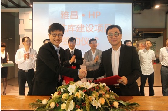 2012年8月10日上午,雅昌企业(集团)有限公司与中国惠普有限公司战略合作签约仪式在北京雅昌艺术中心举行。雅昌集团董事长万捷、集团行政副总裁潘剑平、集团技术副总裁葛侬、集团副总裁宋强、张东等公司领导,惠普公司全球副总裁叶健、中国惠普企业业务集团资深顾问任东岩等嘉宾共同出席了签约仪式。中艺库总经理杨益与中国惠普企业业务集团销售总监李斌代表双方在中艺库合作备忘录上签字并互赠礼物。